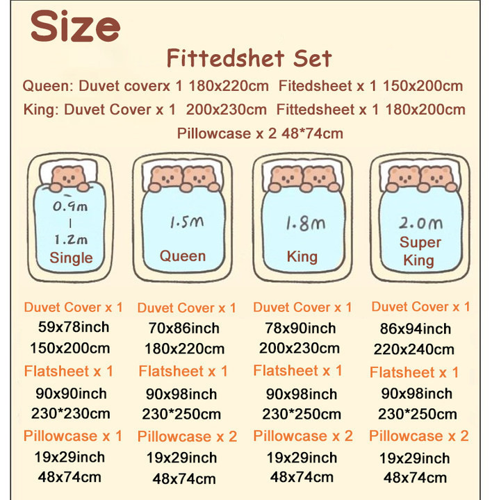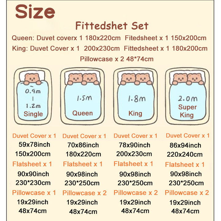 Package:Include 1pc Duvet Cover,1pc Flatsheet and 1/2pc pillowcase,not include quilt!!!!