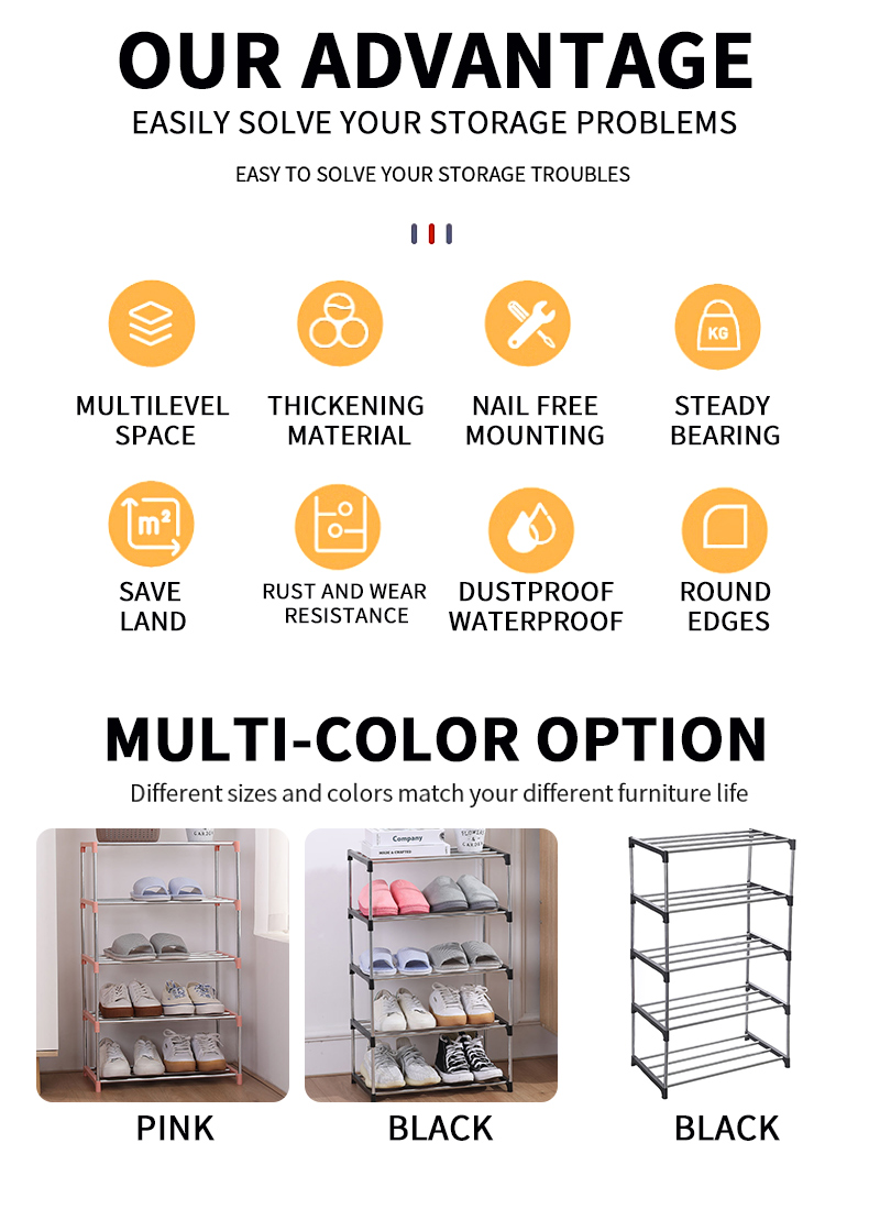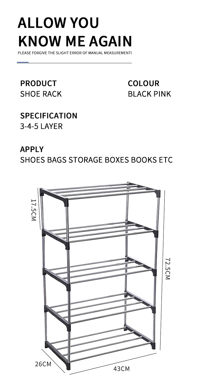 2. Large-capacity storage: The large-capacity design of 3-5 layers can easily store all kinds of shoes such as sports shoes, slippers, cotton shoes, sandals, etc.
