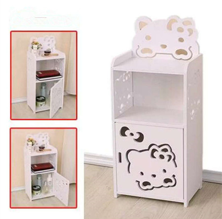 Wood White Bed End Table Nightstand Bathroom Cabinet Kids Furniture Bookcase Table, Creative Water-proof Living Room Multifunctional Cabinet